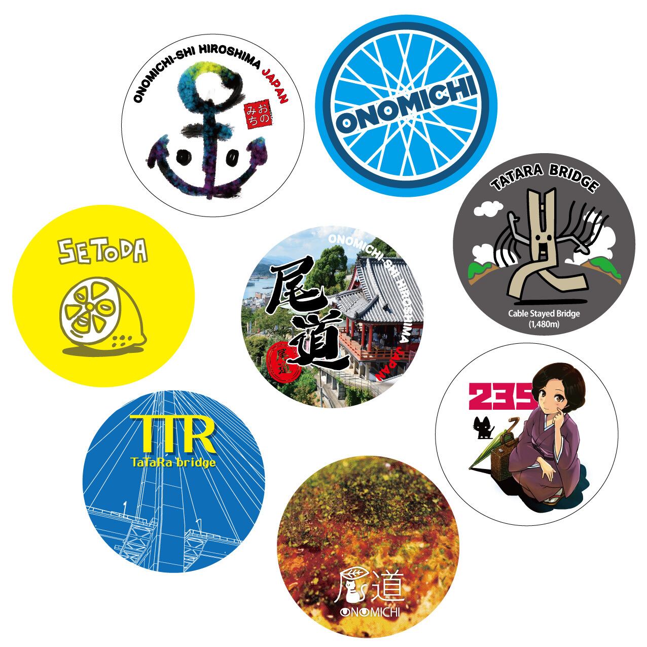 尾道探訪缶バッヂ8個セットC