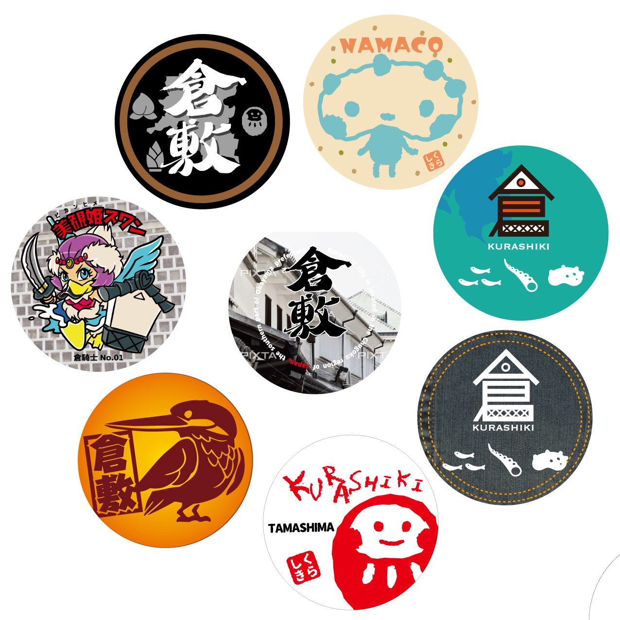 倉敷探訪缶バッヂ8個セットD