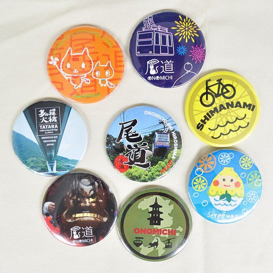 尾道の景勝地や特産物をかわいいイラストにした缶マグネット