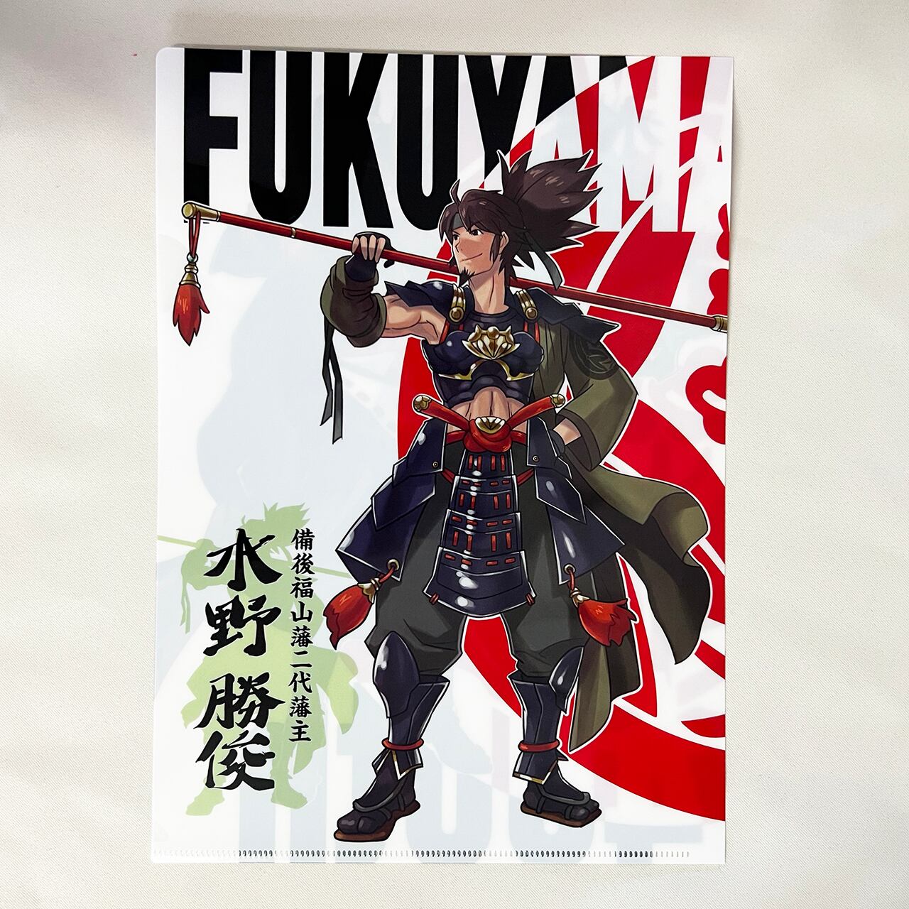 福山城築城400年記念のクリアフォルダ 福山をつくった初代藩主水野勝成と二代目藩主水野勝俊の表裏となってます。 400年の記念にいかがですか?